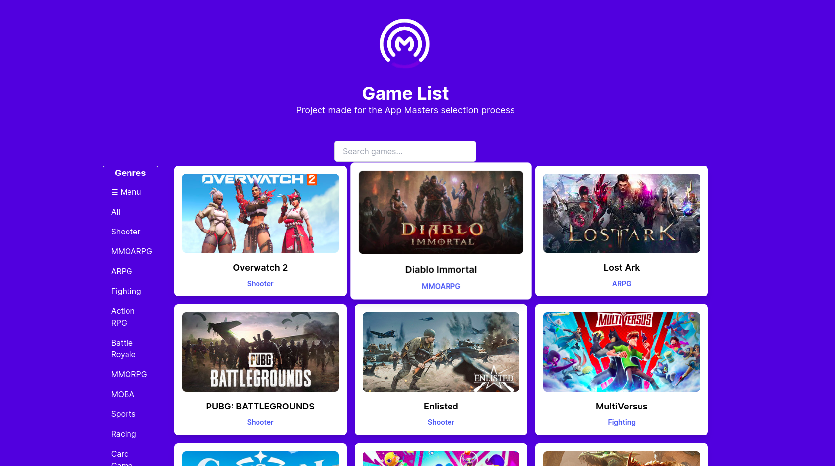 Projeto de uma lista de jogos que permite filtrar os jogos por gênero. O objetivo do projeto é demonstrar habilidades em consumo e filtro de API utilizando React.
